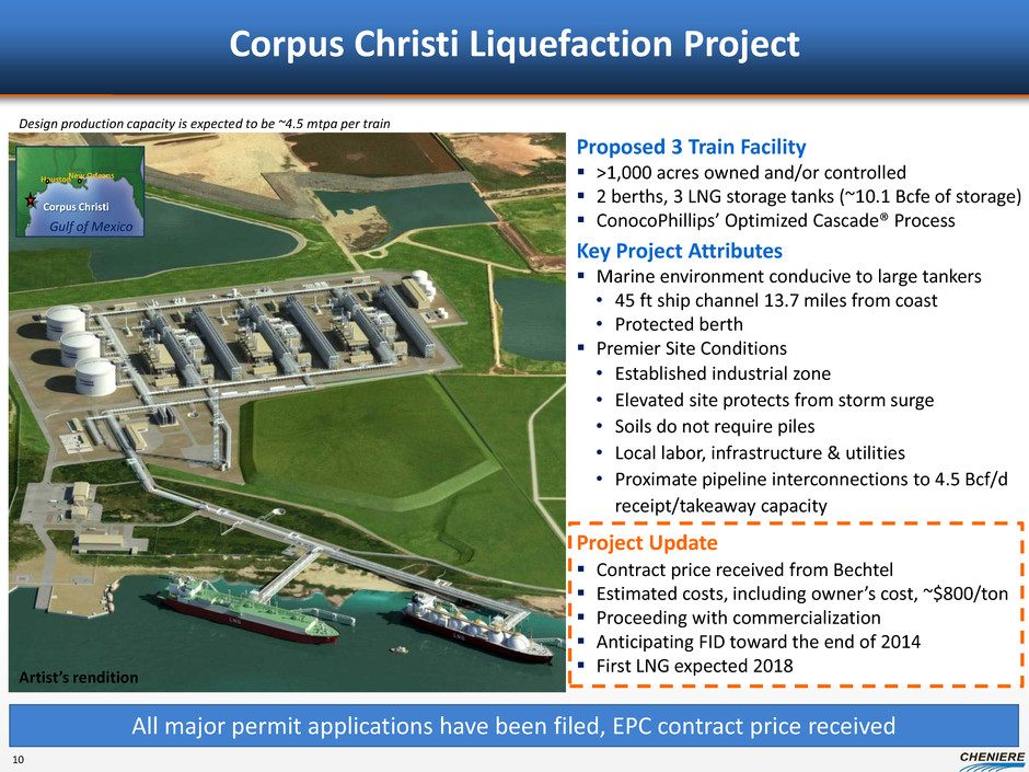 Timeline & Milestones Initiate permitting process (FERC & DOE) Commercial agreements EPC contract Financing commitments Regulatory approvals Issue Notice to Proceed Commence operations (1) Milestone Corpus Christi (1) Each Train of the respective projects is expected to commence operations approximately six to nine months after the previous train. Note: See “Forward Looking Statements” slide. T3-4 T1-2 Target Date 2015/16 Project teams in place with the same key people that developed Sabine Pass LNG and Creole Trail Pipeline on-time and on-budget SPL 17 2016/17 2014 2018/19 2014 2014 2013/14 2014 T5-6 2015 2015 2015 2015 2018 SPL T5: T6:2014