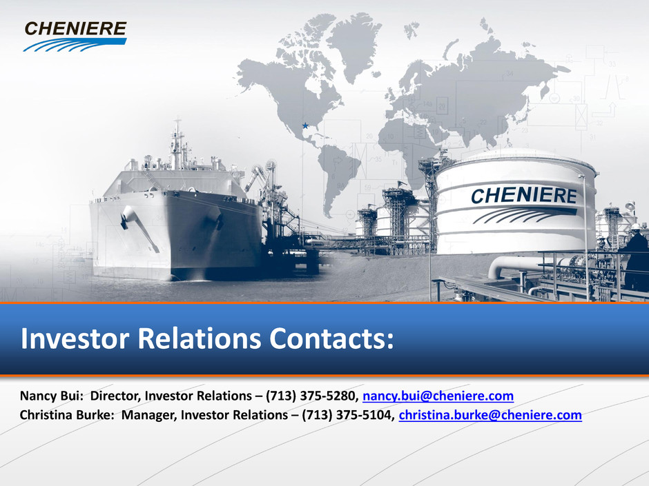 Nancy Bui: Director, Investor Relations – (713) 375-5280, nancy.bui@cheniere.com Christina Burke: Manager, Investor Relations – (713) 375-5104, christina.burke@cheniere.com Investor Relations Contacts: