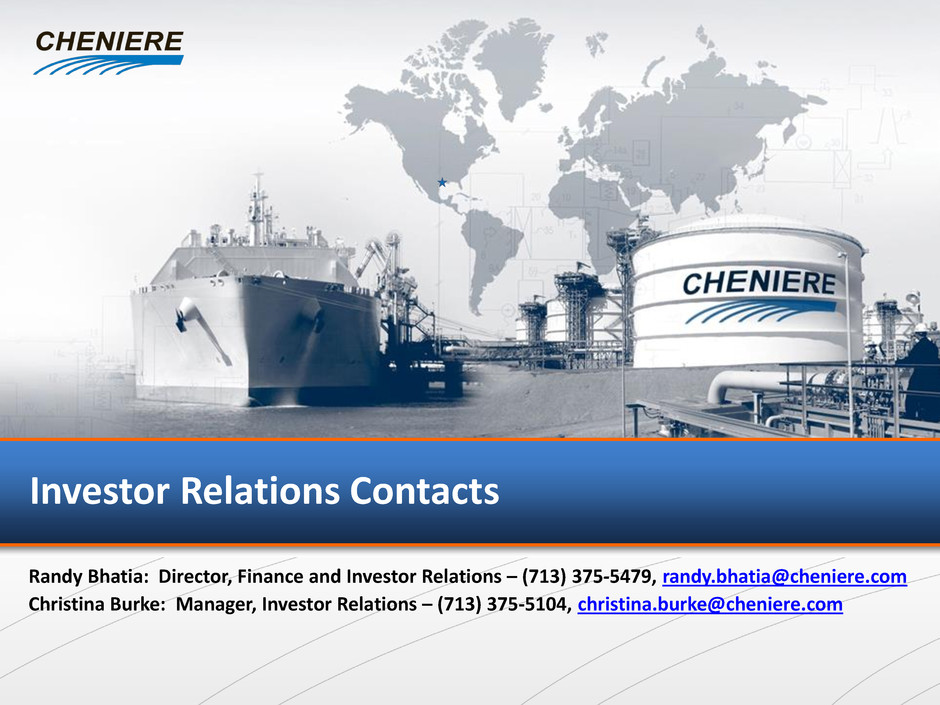 Randy Bhatia: Director, Finance and Investor Relations – (713) 375-5479, randy.bhatia@cheniere.com Christina Burke: Manager, Investor Relations – (713) 375-5104, christina.burke@cheniere.com Investor Relations Contacts