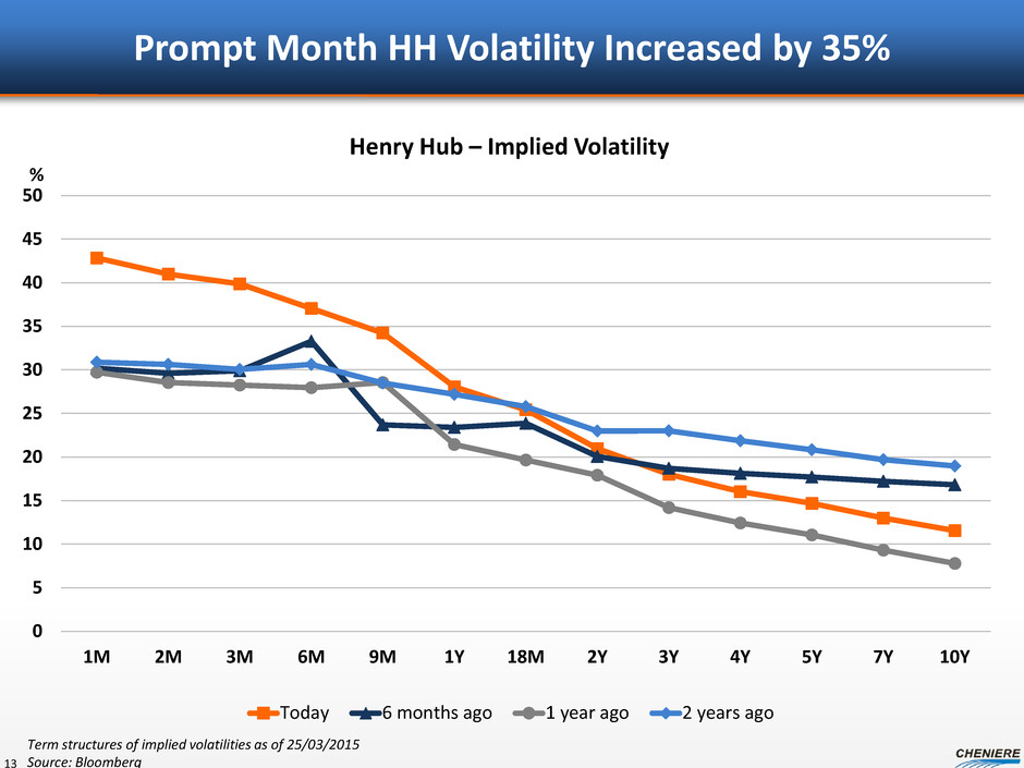 Prompt Month HH Volatility Increased by 35% 13 0 5 10 15 20 25 30 35 40 45 50 1M 2M 3M 6M 9M 1Y 18M 2Y 3Y 4Y 5Y 7Y 10Y % Henry Hub – Implied Volatility Today 6 months ago 1 year ago 2 years ago Term structures of implied volatilities as of 25/03/2015 Source: Bloomberg