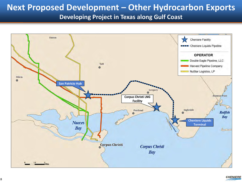 Next Proposed Development – Other Hydrocarbon Exports Developing Project in Texas along Gulf Coast 8 Corpus Christi LNG Facility Cheniere Liquids Terminal San Patricio Hub