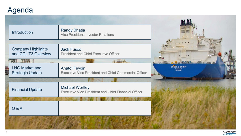 Agenda Randy Bhatia Introduction Vice President, Investor Relations Company Highlights Jack Fusco and CCL T3 Overview President and Chief Executive Officer LNG Market and Anatol Feygin Strategic Update Executive Vice President and Chief Commercial Officer Michael Wortley Financial Update Executive Vice President and Chief Financial Officer Q & A 4