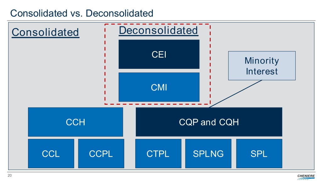 Consolidated vs. Deconsolidated Consolidated Deconsolidated CEI Minority Interest CMI CCH CQP and CQH CCL CCPL CTPL SPLNG SPL 20